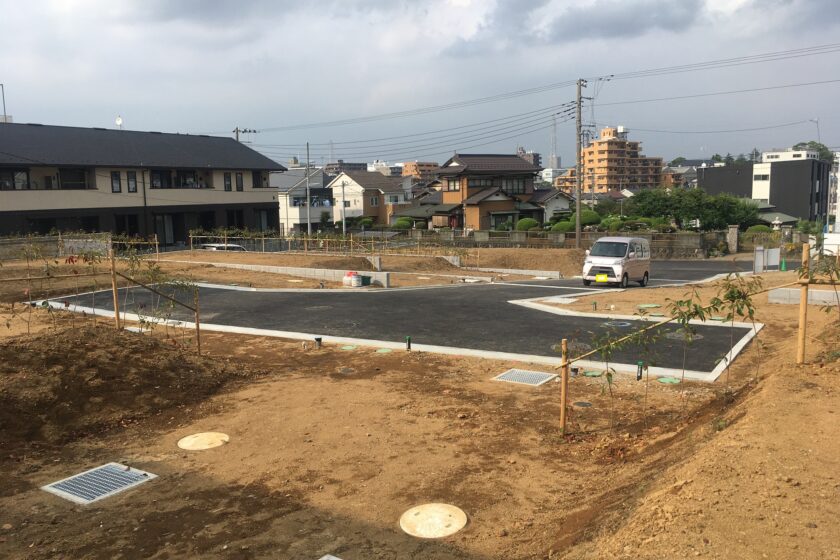 藤沢市石川五丁目の12区画宅地造成開発現場です。高低差をうまく制御した計画となっております