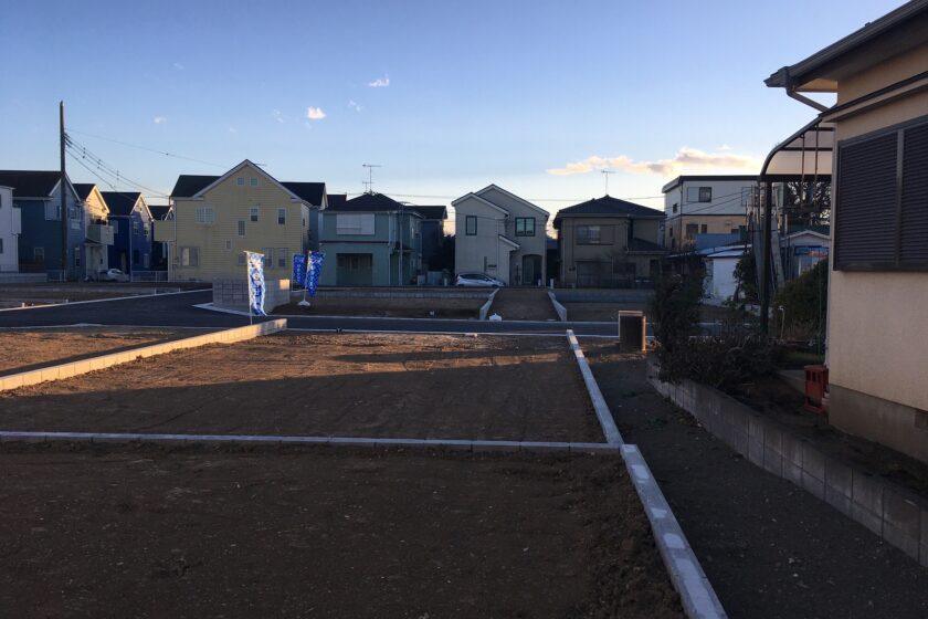 茅ヶ崎市萩園の宅地造成15区画です。道路幅員が変わる道路を造成して区画を多くする工夫をしております。