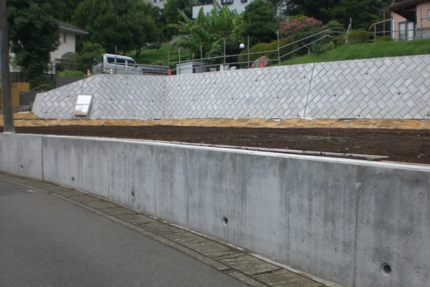 川崎市麻生区高石の共同住宅1棟建設のための宅地造成工事です。間知ブロック擁壁を背面側に、道路側はL型擁壁を設置しています。これから共同住宅が建てられます。完成が楽しみです。 杉並区和泉二丁目 前の記事 町田市金井 次の記事