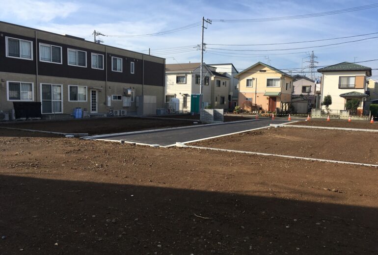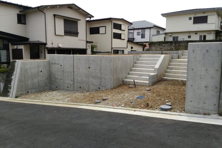 横浜市南区六ッ川三丁目の宅地造成2区画です。既存擁壁をうまく残しながらの造成コストを意識した計画となりました。