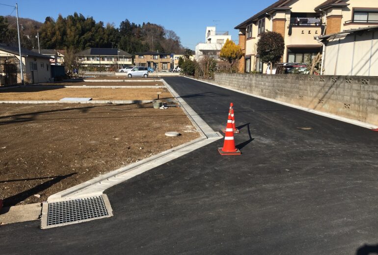 道路後退の上の新設道路現場です