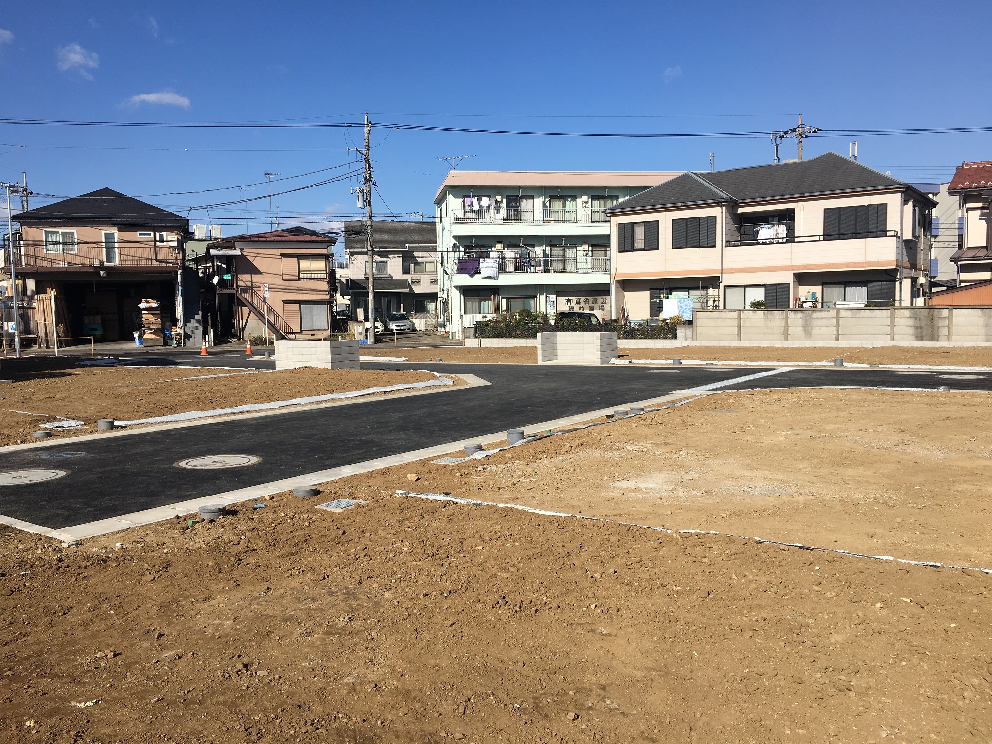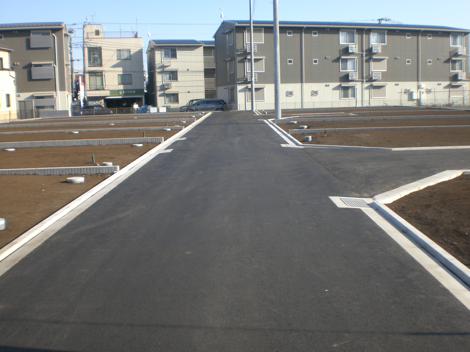 川崎市中原区宮内一丁目の16区画の宅地造成です。 前面道路内に下水道の汚泥圧送管が埋設されていて、設備業者さんが苦労された物件でした。