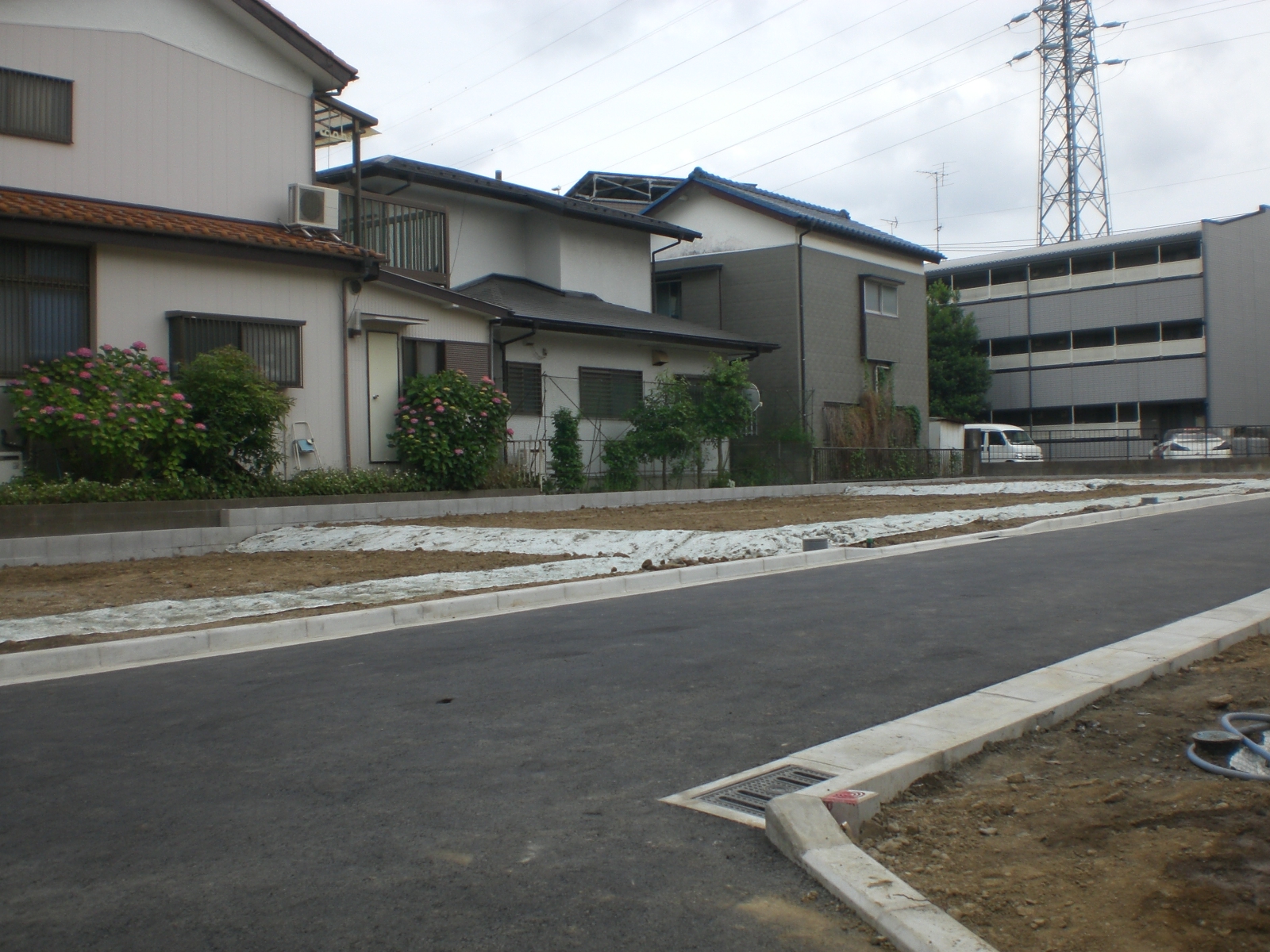 小田原市栢山の宅地開発6区画です。 既設水路沿いの工事で平面開発ですが、難易度が高かった計画でした。